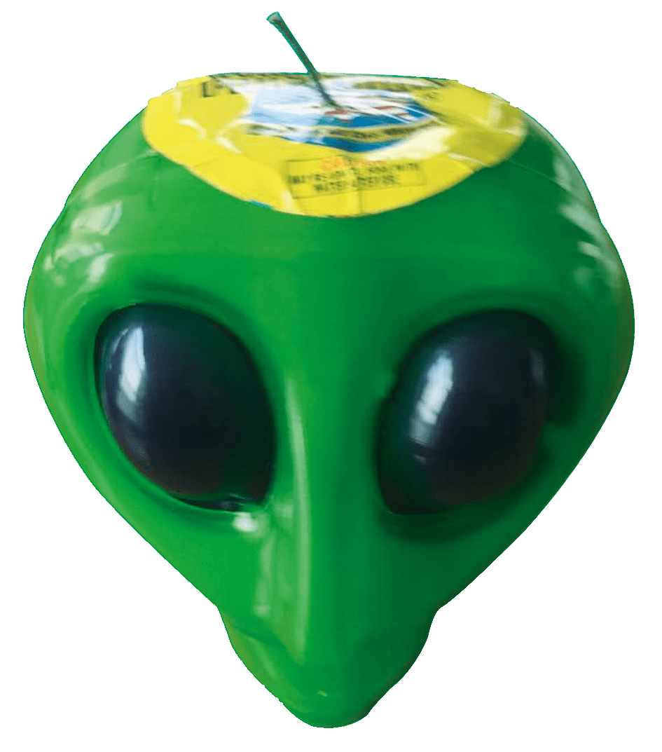 Great fountain. The alien head glows during the fireworks performance. This fountain has sharp blue and white colors with a whistling.